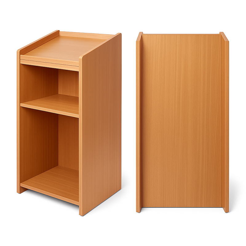 “A classic and durable lectern crafted using high-quality engineered or solid wood. Designed with a spacious reading surface and optional storage shelves, it offers both elegance and utility.
